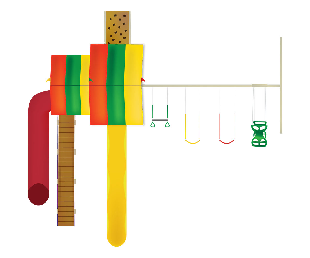 • Swings included: Trapeze, sling swing (x2), horse glider