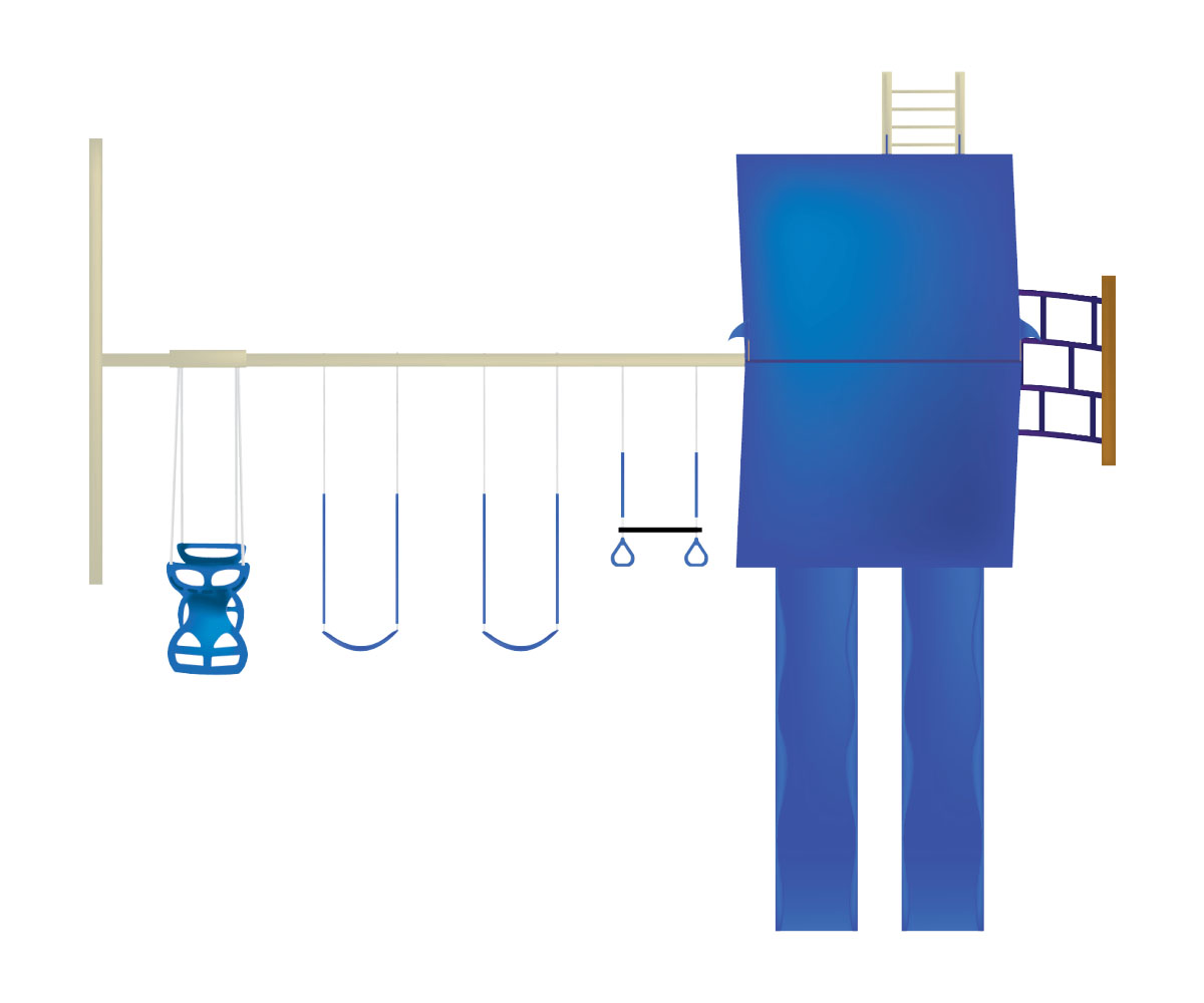 • Swings Included: Horse glider, sling swing (x2), trapeze