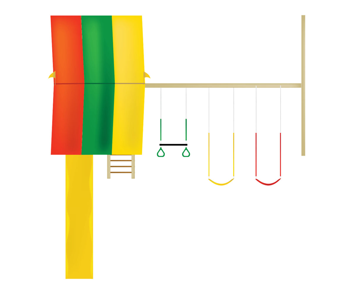 • Swings Included: Trapeze, sling swing (x2)