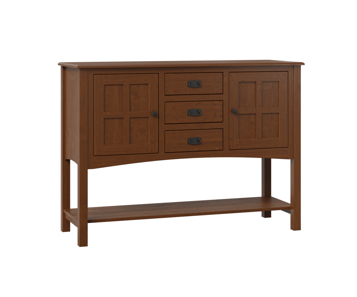 Features: • Dovetailed drawers • Full extension drawer slides • One adjustable shelf behind each wood door