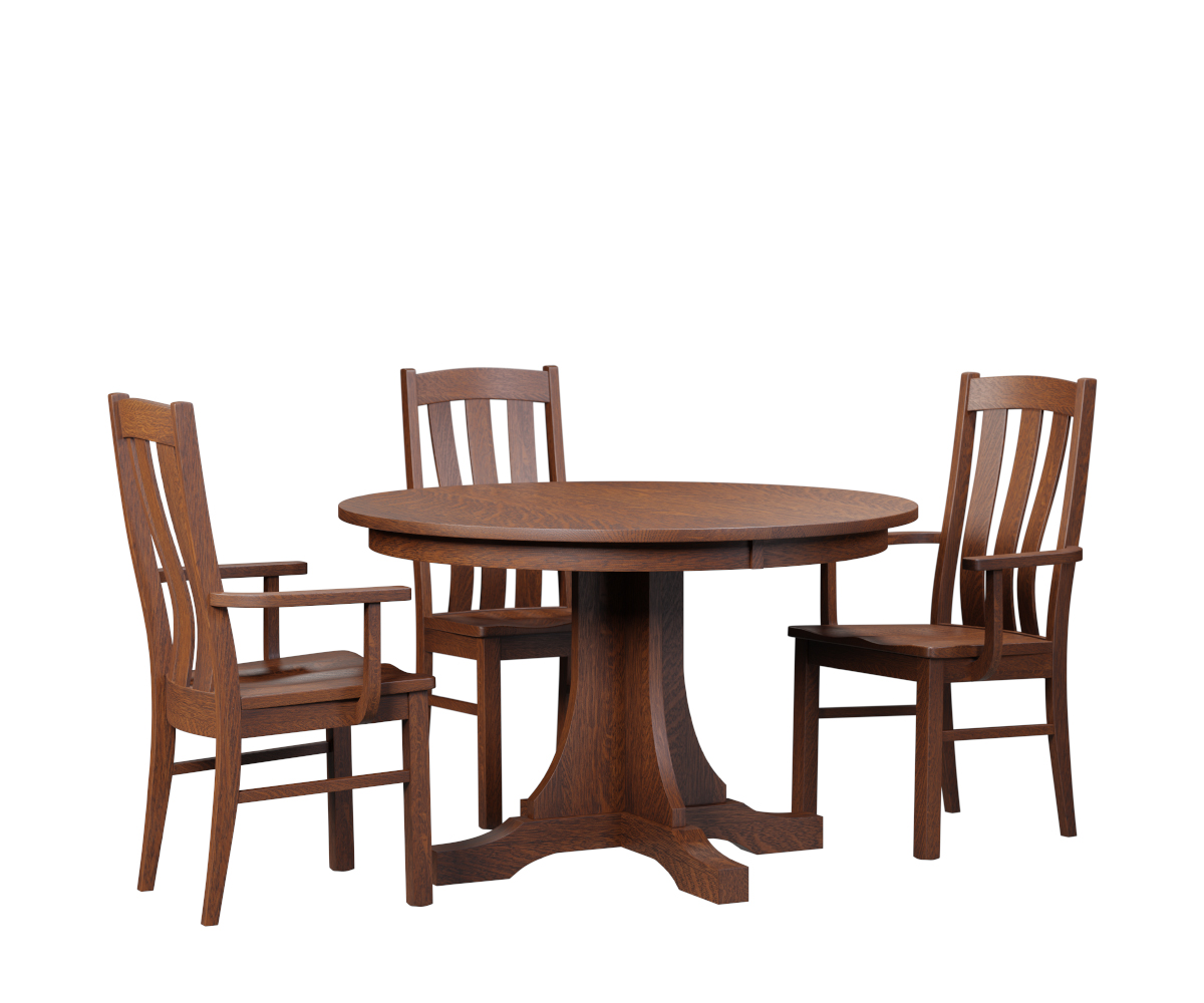 Commonly Ordered Table Sizes: • 42″ Round”: Solid Top – Seats 4 • 42″ Round: 2 Leaves – Seats 6-7