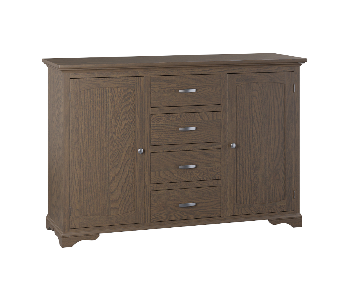 Features: One adjustable wood shelf behind the doors Dovetailed drawers Full extension drawer slides