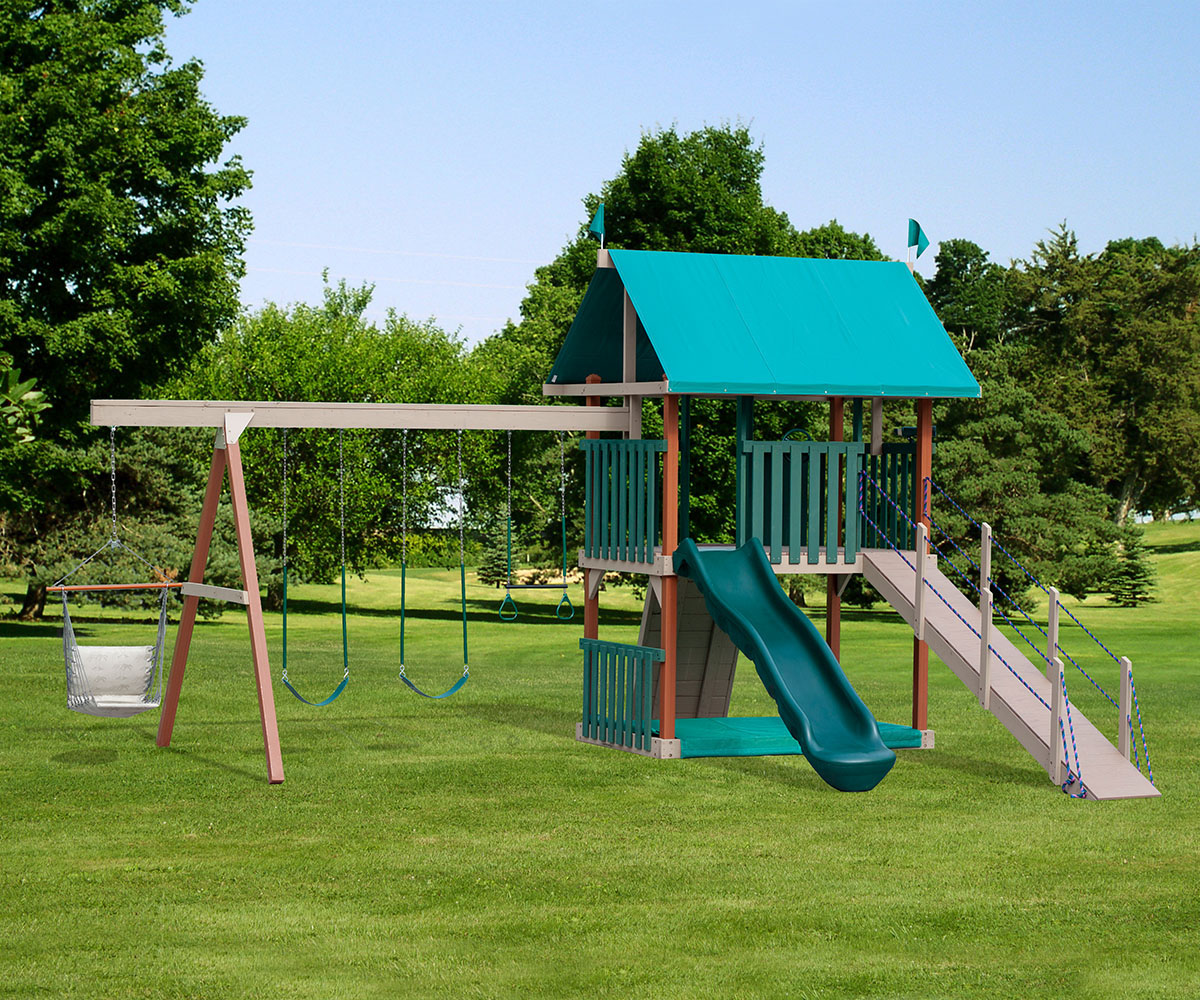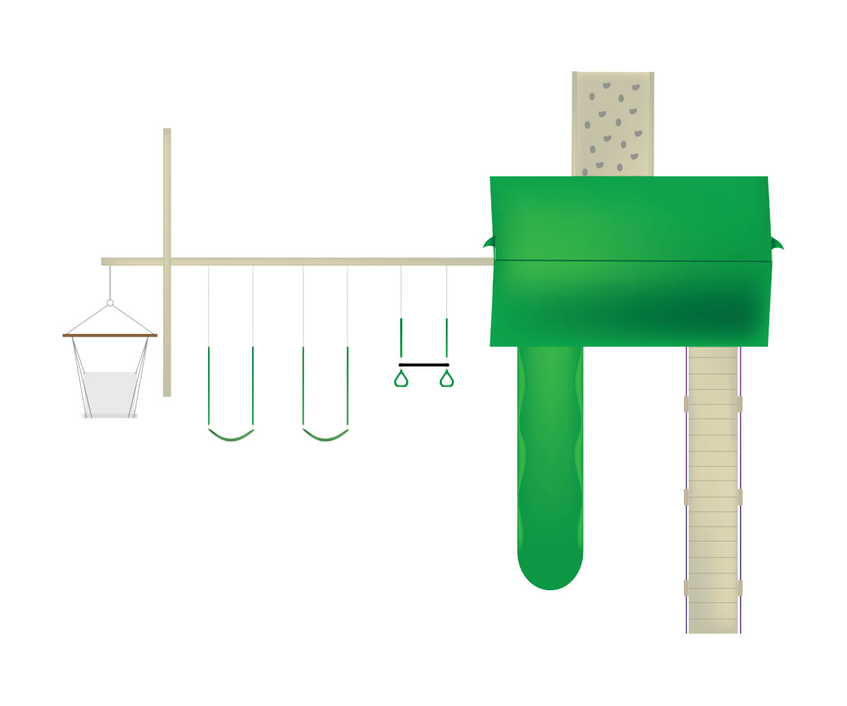 • Swings Included: Hammock swing, sling swing (x2), trapeze